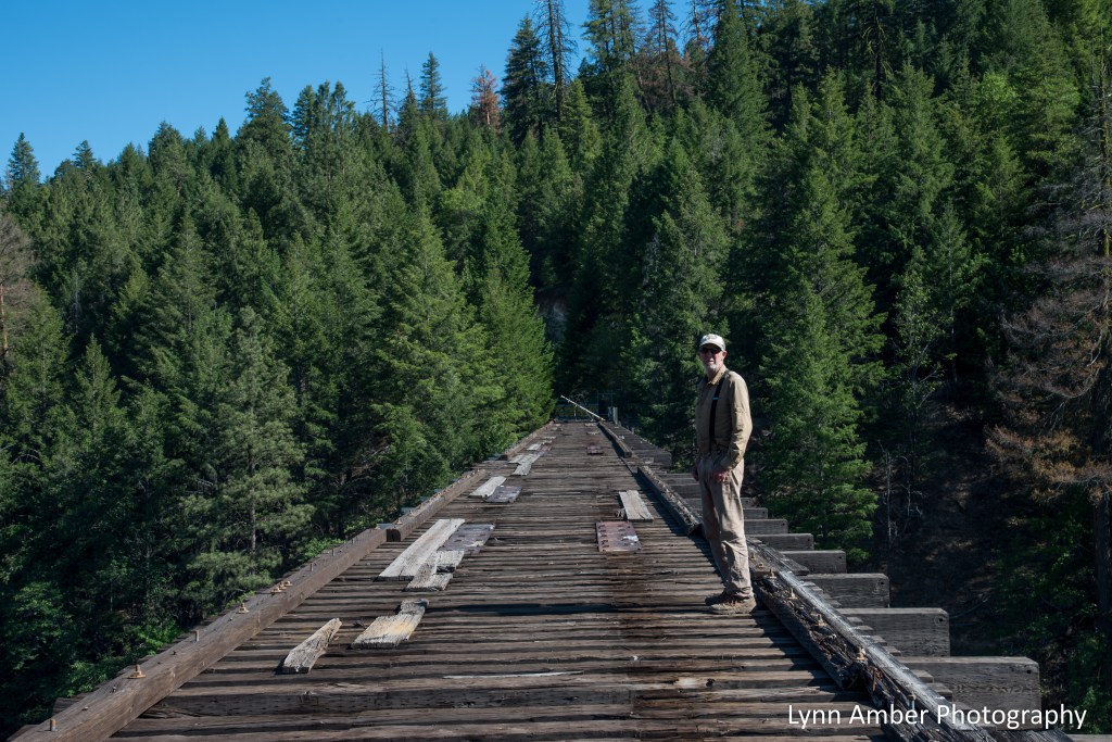 A short distance from Burney Falls is another interesting attraction that I did not want to miss. One location for some scenes from the iconic, 1986 coming-of-age movie Stand By Me was filmed in this area. We made the detour to see the infamous railroad bridge on the Great Shasta Rail line where, in the movie, the boys had a close encounter with a train. Cool!! Of course, Jim always stretches the boundaries of acceptable behavior and ventured past the barriers to stand on the bridge! 😊
