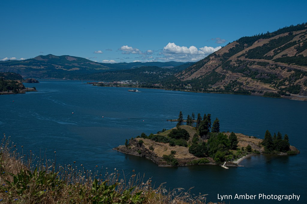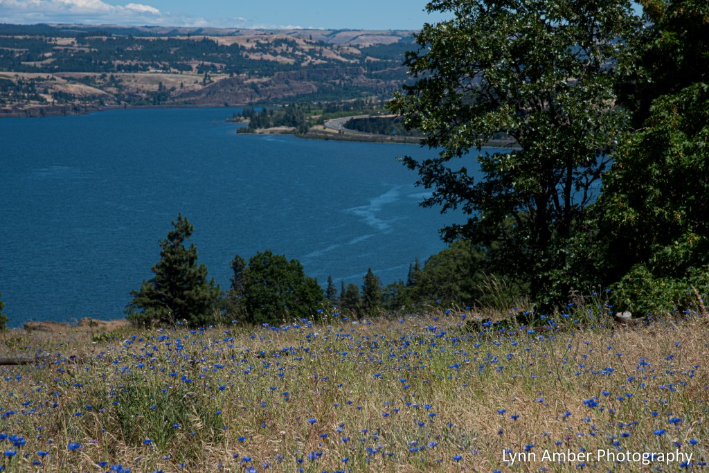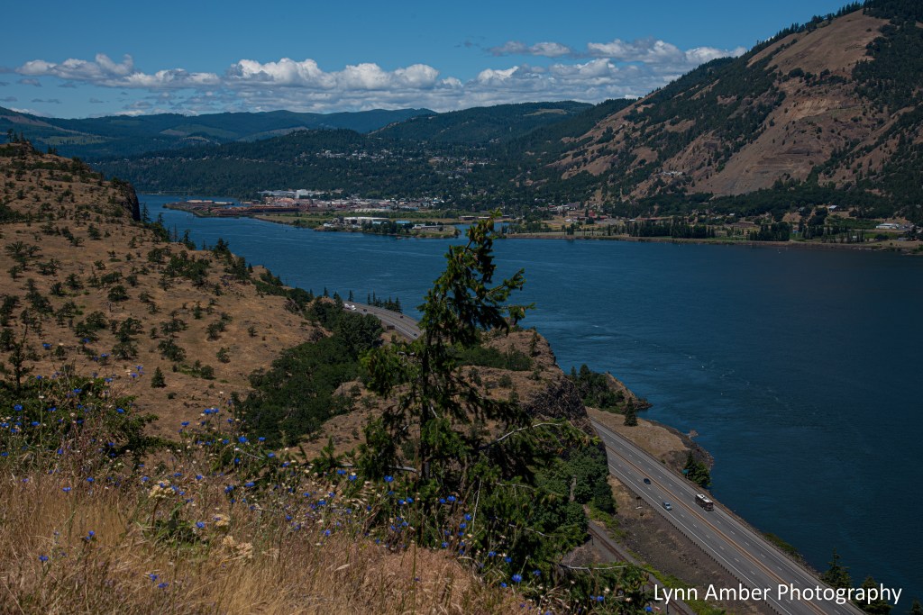 As the signage above says – it is indeed a “road with a view!” The old road sits high above the Columbia River and Interstate 84 and offers up some spectacular views of the river along the winding, hilly trail. There are a few overlooks along the way that allow for resting and admiring the remarkable landscape – with its transition from a Douglas Fir forest to a high desert environment.